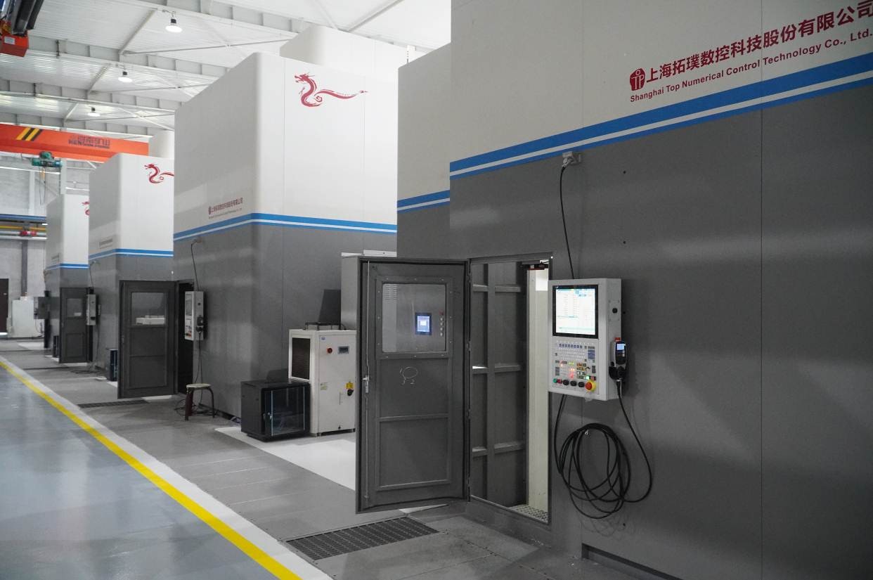 由沈陽飛機(jī)工業(yè)集團(tuán)有限公司、沈陽航空產(chǎn)業(yè)集團(tuán)、沈陽航空制造有限公司、華中數(shù)控等企業(yè)合作建設(shè)的沈陽航空復(fù)雜結(jié)構(gòu)件智能制造生產(chǎn)基地,是國(guó)內(nèi)航空航天領(lǐng)域首條全部應(yīng)用全國(guó)產(chǎn)高檔數(shù)控設(shè)備的智能制造生產(chǎn)線,該基地主要加工航空航天復(fù)雜零件。整條產(chǎn)線機(jī)床設(shè)備共六十余臺(tái),其中高檔五軸設(shè)備四十余臺(tái),絕大部分配置華中8型數(shù)控系統(tǒng)。該項(xiàng)目的主要技術(shù)特點(diǎn)是“三國(guó)六化一核心”,華中8型數(shù)控系統(tǒng)的高速、高精、智能化功能實(shí)現(xiàn)了綜合應(yīng)用。