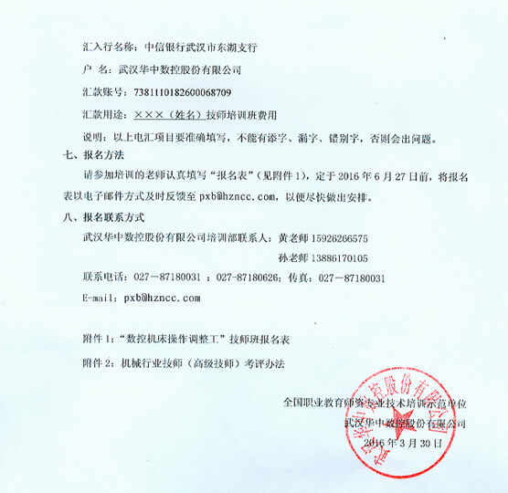 武漢華中數(shù)控股份有限公司培訓(xùn)部聯(lián)系人:黃老師15926266576;孫老師13886170105