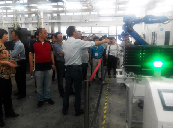4月26日上午,參會代表一行實地參觀考察華中數控承擔建設的國家首個3C智能制造示范工廠以及松山湖大連機床智能制造展示中心。華中數控熊清平副總裁重點為大家詳細介紹了華中數控與東莞勁勝共建的3C智能制造示范工廠,此項目智能設備層由180臺高速鉆攻中心(配置華中8型高速鉆攻中心數控系統),72臺華數機器人,25臺RGV和15臺AGV小車構成,集成華中數控云服務平臺,組成完整的移動終端配件智能制造典范工廠,充分體現了“三國、五化、一核心”的智能制造戰略思想。4月26日下午,與會代表一行參加了華中數控智能制造人才培養研討會,現場交流了智能制造相關技術、華中數控在智能制造人才培養方面所開展的教材編寫、教學資源開發、策劃舉辦行業大賽以及華中數控與職業院校在全國建立智能制造公共實訓平臺示范點的工作情況。