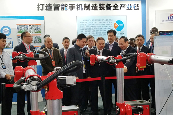 ?▼中國工程院院長周濟、廣東省副省長袁寶成一行參觀華數新一代HSR-BR6雙旋機器人