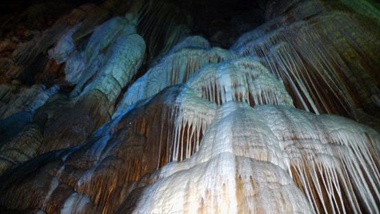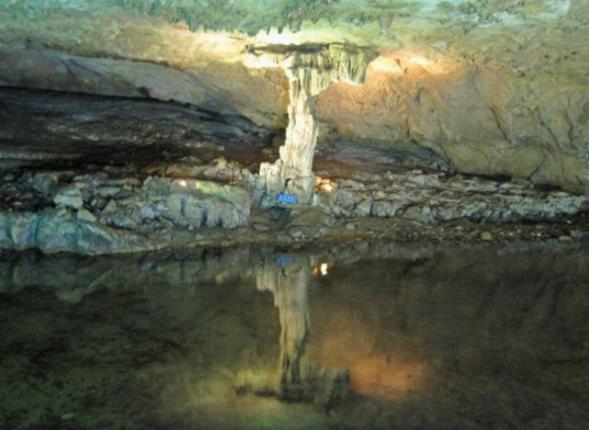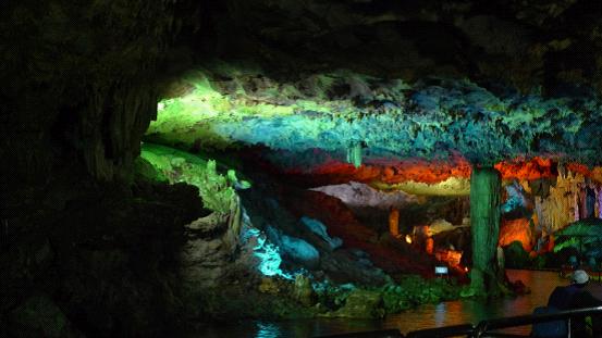 跟著導(dǎo)游走了沒多遠(yuǎn),就上了游艇。游艇在昏暗的燈光指引下慢慢向洞的深處游去,一個個奇異造型的鐘乳石映入眼簾,在燈光的照射下發(fā)出璀燦的光芒。游客們都發(fā)出嘖嘖的贊嘆聲。感嘆大自然的神奇。