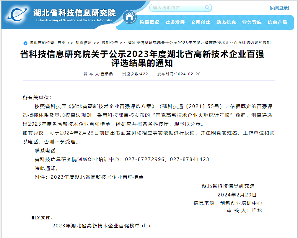 近日,湖北省科技信息研究院發布《省科技信息研究院關于公示2023年度湖北省高新技術企業百強評選結果的通知》,武漢華中數控股份有限公司入選2023年度湖北省高新技術企業百強名單。省科技信息研究院關于公示2023年度湖北省高新...