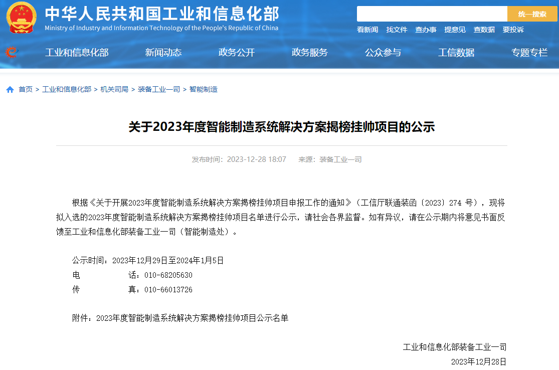 喜報 | 泉州華數機器人入選2023年度智能制造系統解決方案揭榜掛帥項目