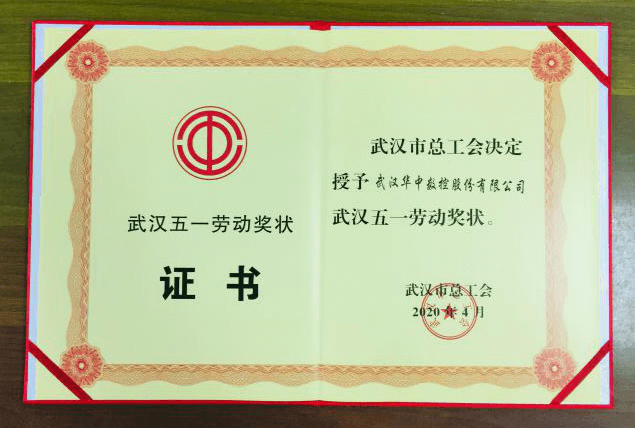 武漢華中數控股份有限公司榮獲2020年武漢市五一勞動獎狀